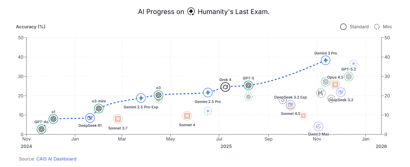 On December 11th, 2025, Google released Gemini 3 Pro, which immediately swept the leaderboards. It dominated almost every metric, including 'Humanity's Last Exam', a grueling multimodal benchmark designed to represent the final frontier of human knowledge with over 2,500 questions across 100+ subjects.